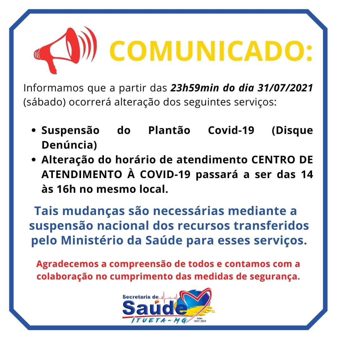 Comunicado: Suspensão Plantão Disque Denúncia e Alteração horário atendimento COVID-19
