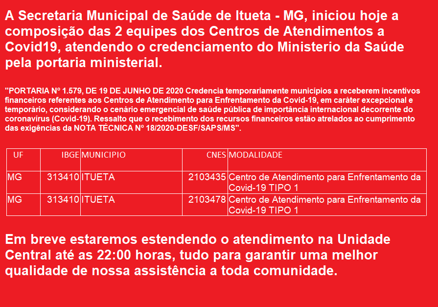 ESUS - Secretaria Municipal de Saúde | Itueta - MG - Últimas Notícias Ir direto para menu de acessibilidade.