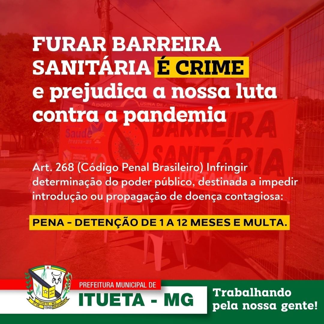 FURAR BARREIRA SANITÁRIA É CRIME E PREJUDICA A NOSSA LUTA DE COMBATE AO CORONAVÍRUS