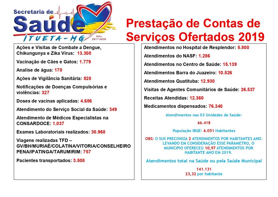 Secretaria Municipal de Saúde de Itueta presta contas de serviços ofertados em 2019.