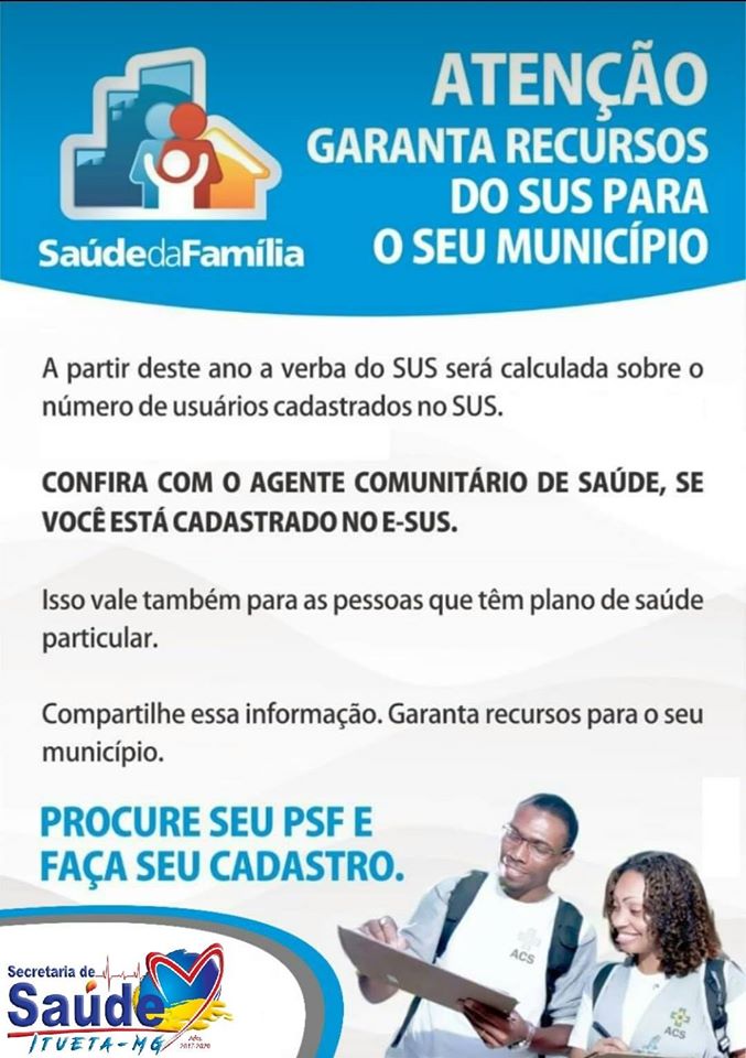 ESUS - Secretaria Municipal de Saúde | Itueta - MG - Últimas Notícias Ir direto para menu de acessibilidade.