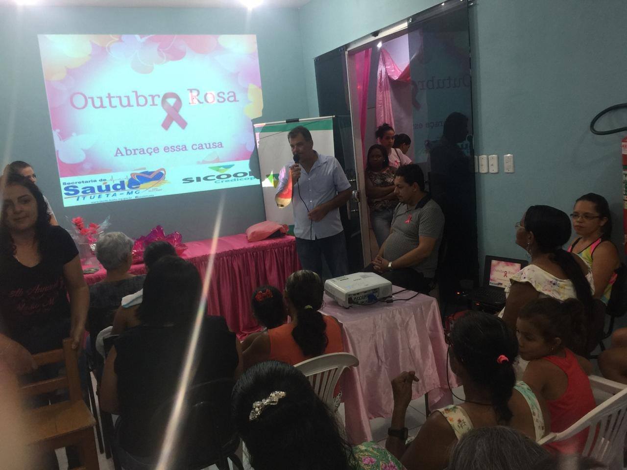 Na noite desta quarta-feira 23 de outubro de 2019, aconteceu as ações e encerramento do Outubro Rosa em Quatituba, na oportunidade o prefeito municipal senhor Valter José Nicoli fez abertura agradecendo a participação de todas as mulheres e pedindo que todas se previnam. O Secretário Municipal de Saúde de Itueta senhor Ronaldo Luciano de Paulo também agradeceu as participantes e disse que o mês foi um marco inovador na prevenção de saúde da mulher. Houve palestra educativa, sorteio de brindes em uma parceria com o Banco Sicoob. Parabéns a toda equipe.